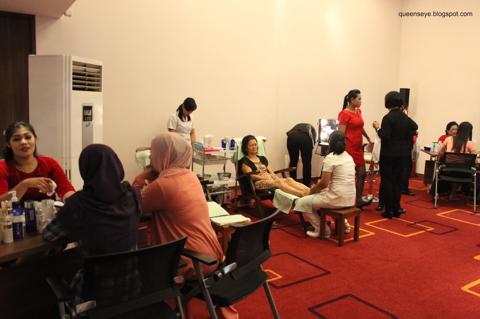 Peserta juga bisa memanjakan diri dengan service secara gratis yang disediakan oleh Kose Indonesia, seperti massage, cek kulit wajah, makeup dan sebagainya.